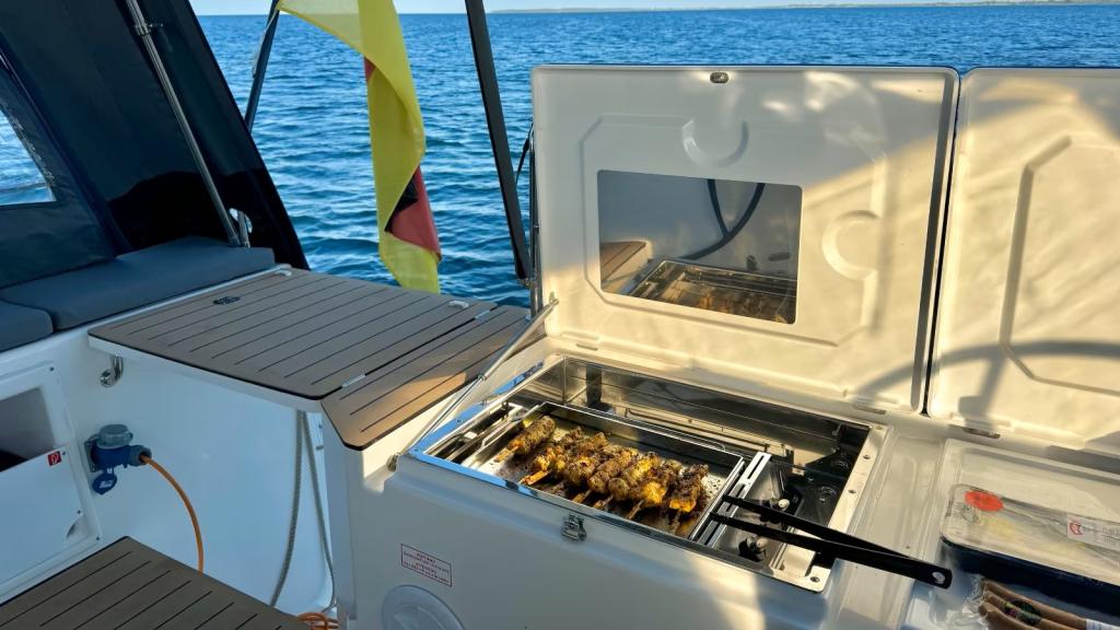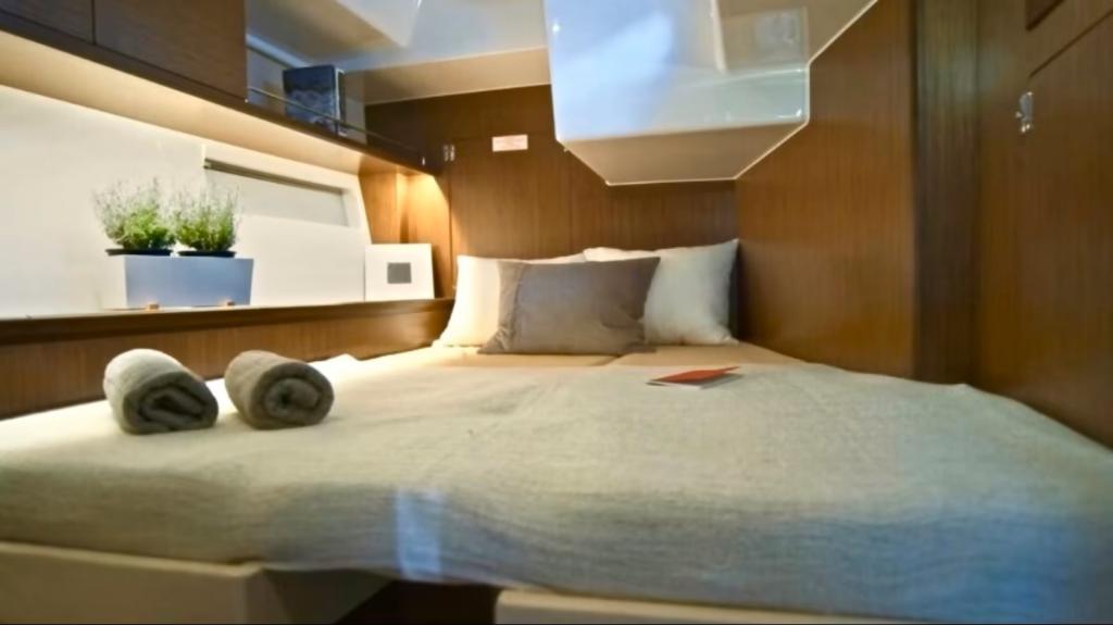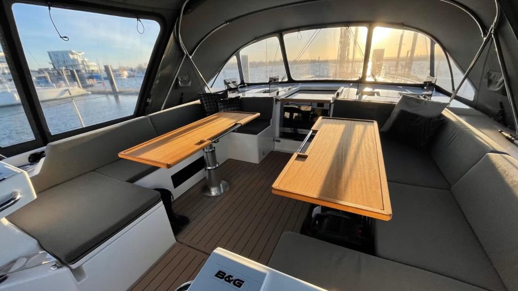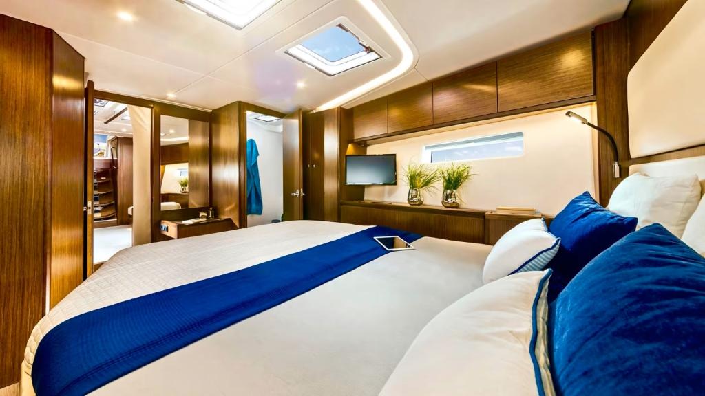 Ihre großen Abmessungen, das geräumige Cockpit und die hydraulische Badeplattform sind ideal, um die Freuden des Meeres mit Familie oder Freunden in vollen Zügen zu genießen. Im Inneren wurde jedes Detail durchdacht, um maximalen Komfort zu bieten, mit großzügigen Kabinen und einem privaten Badezimmer für jeden Schlafbereich.
