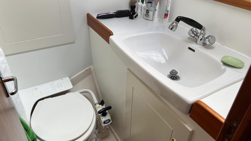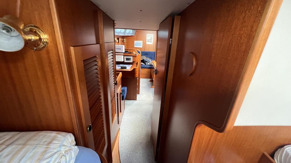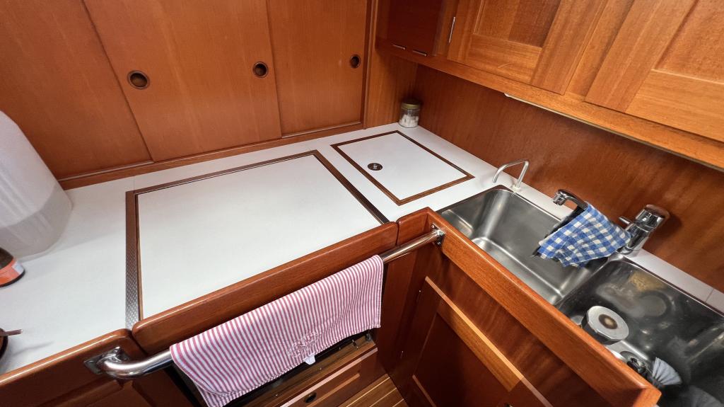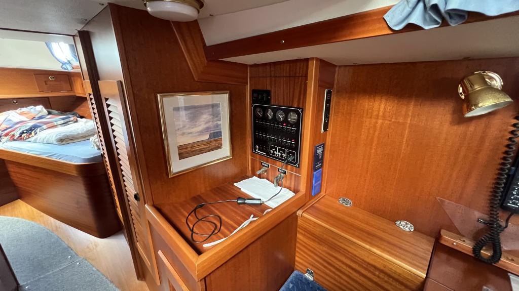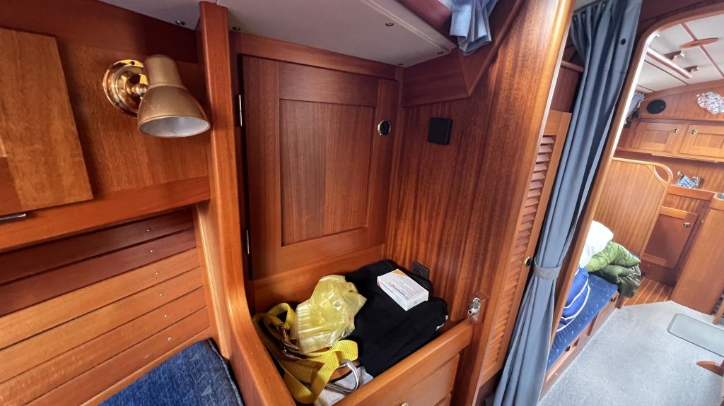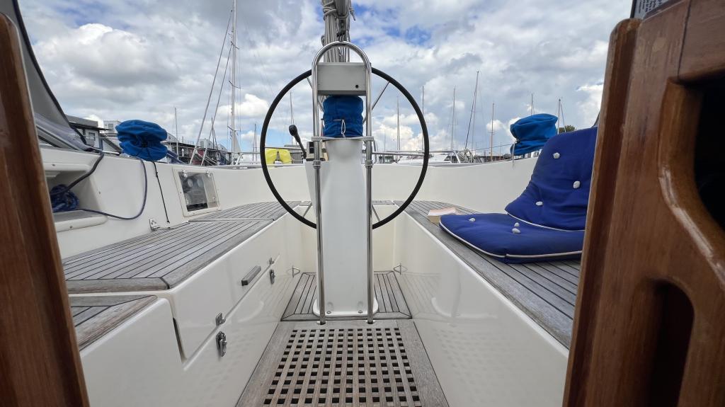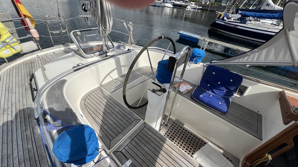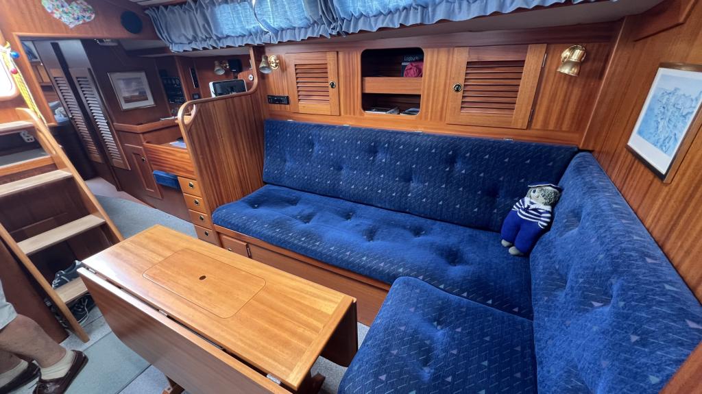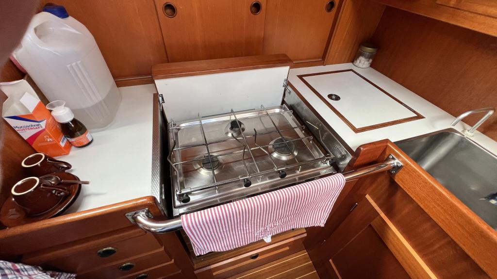 Es ist komplett Ausgestattet, neben dem ganzen Geschirr sind auch Handbücher und Seekarten mit an Board.