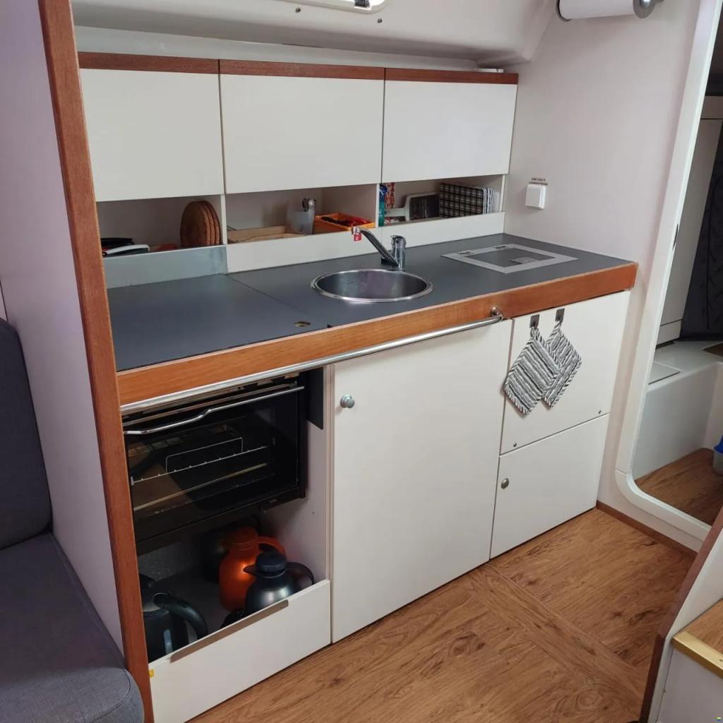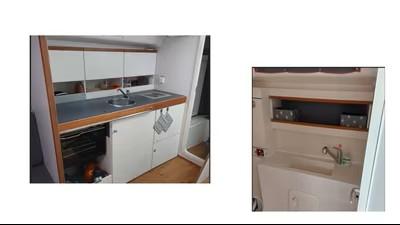 Elektro WC, Heizung Webasto Airtop Evo 5500 mit 90mm Schlauch bis ins Vorschiff mit 60mm Auslass in jeder Kabine, Landstrom mit eigenem FI sehr aufwändig umgesetzt, 12V Steckdosen in jeder Kabine, Sicherheitsstromnetz für das Funksystem, Hochwertige Kompressorkühlschrank 130 Liter , LED Beleuchtung im ganzen Schiff, Backofen, Div. Einbauten in Teak sowie kleine Schaps im Vorschiff. etc.