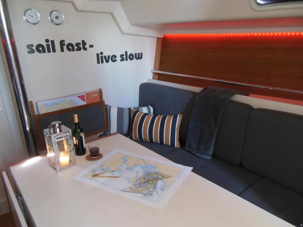 2ter Segelsatz ( komplett neu ) VHF - Cockpittisch - Innenkissen in Grau ( ein kompletter Satz Bezüge in Reserve) - Lazyjacks / Maindrop - Lattenhauptsegel - Innenmodifikation Teakholz (Saloon , Pantry, Kabinen ) - Isiteek im Cockpit - Stereoanlage (Lautsprecher innen/ aussen) - Blister 105/ 140 qm mit Bergeschlauch-, Tankanzeige und Batteriestatus digitalisiert und vieles mehr...