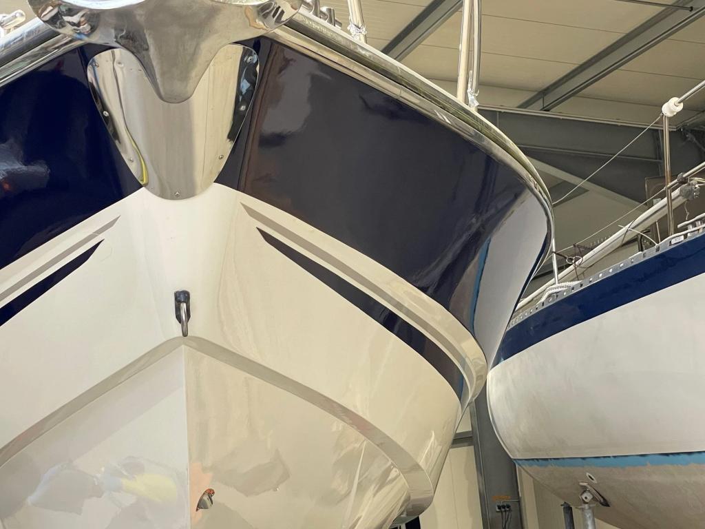 Der V-Rumpf dieser eleganten Yacht sorgt für hervorragende Fahreigenschaften und Handling auch bei rauer See.