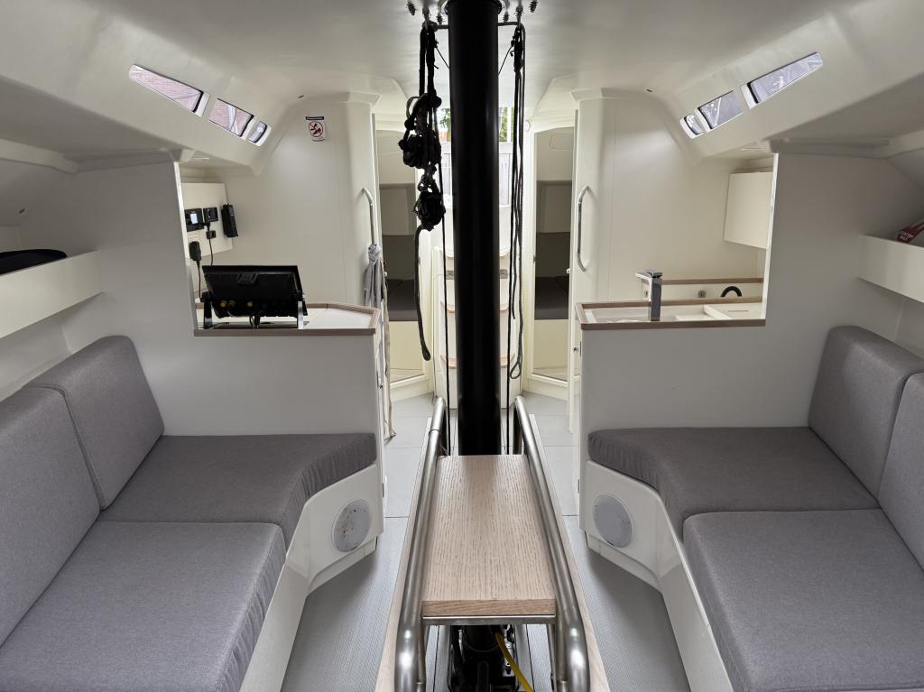 Die Fuoriserie-Version wurde entwickelt, um sich in den ORC- und IRC-Rennflotten zu behaupten, ohne auf Fahrkomfort zu verzichten, und hat eine sportliche Seele in ihren Linien und nutzbaren ergonomischen Räumen. Das innovative symmetrische Layout ermöglicht eine perfekte Gewichtsverteilung und das Boot kann mit einem Mast, Baum und Steuerstand aus Carbon ausgestattet werden.