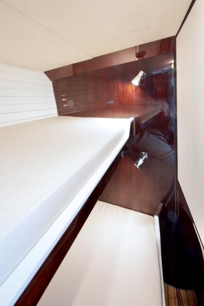 The Guest Cabin on the Kiel Classic 44 is designed for functionality and comfort, featuring a set of practical bunk beds well suited for accommodating two guests.