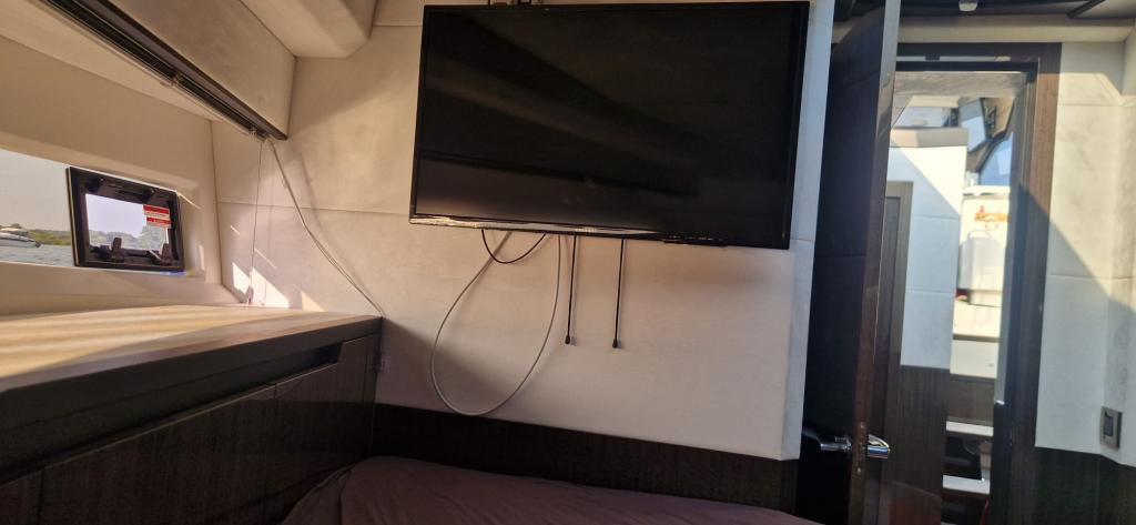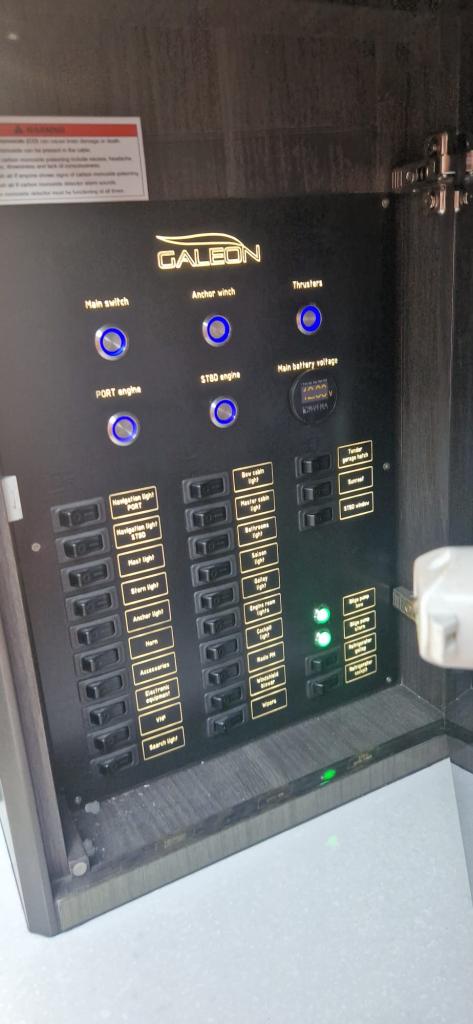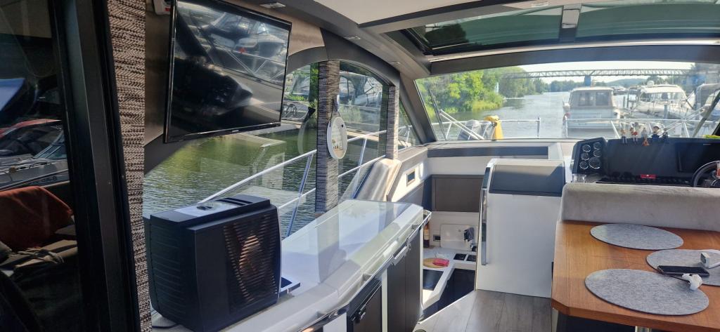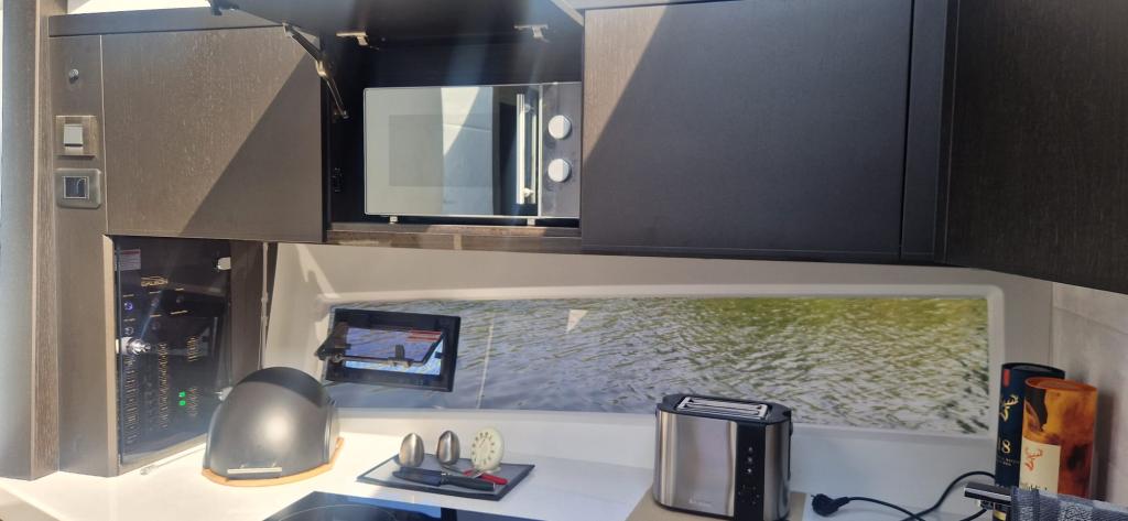 Badeplattform zwei LED Leuchten in der hinteren Heckgarage Dimmbares Licht im inneren Cockpit des Cockpits zweiter zusätzlicher Ladeanschluss am Bug Lackierte Wetbar Türen X-LED light Element in Masterkabine 2 zusätzliche 230V Steckdosen in der Küche Loch für Abfall in der Küchen Korian Platte Corianplatte in der Wetbar außen -Irrtümer Vorbehalten