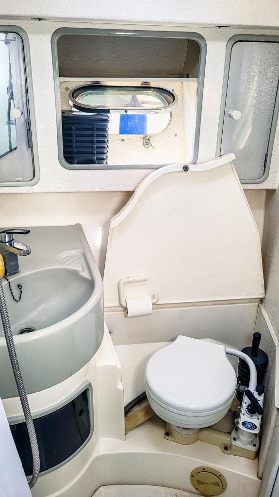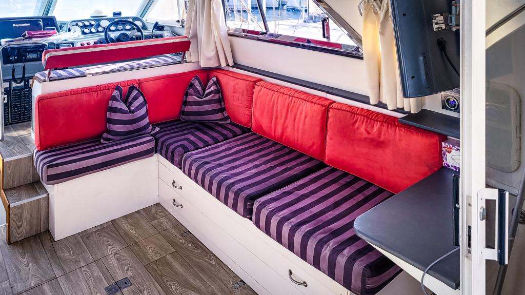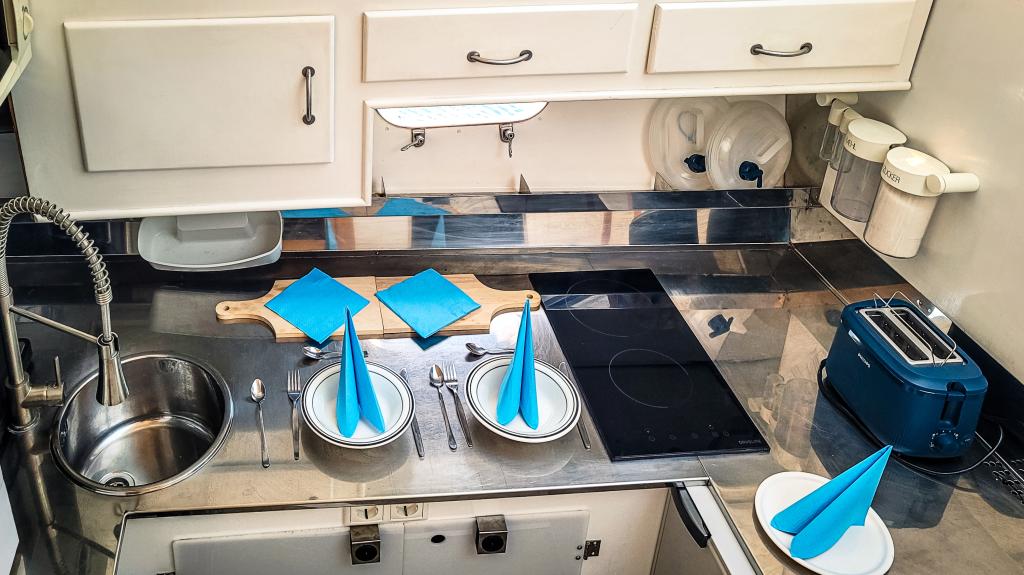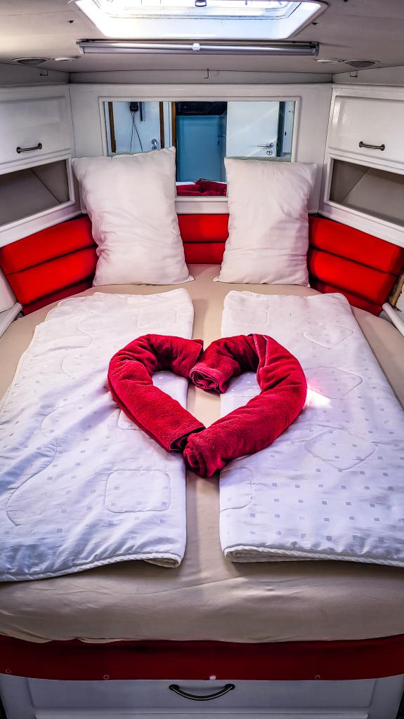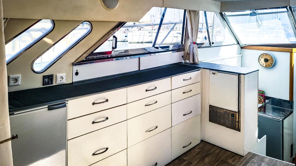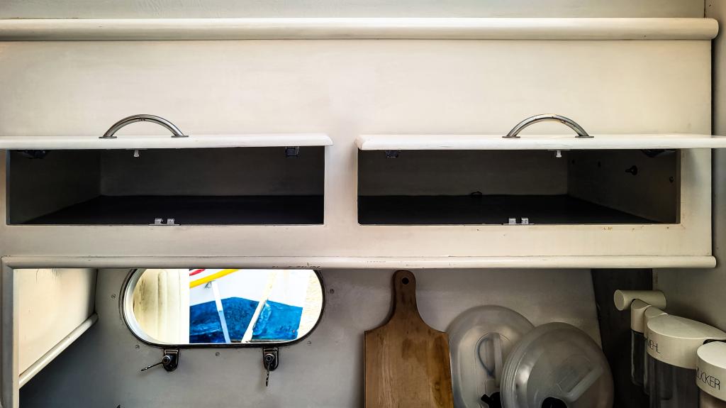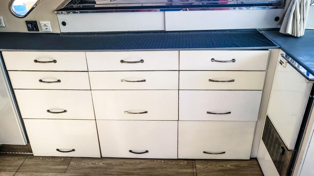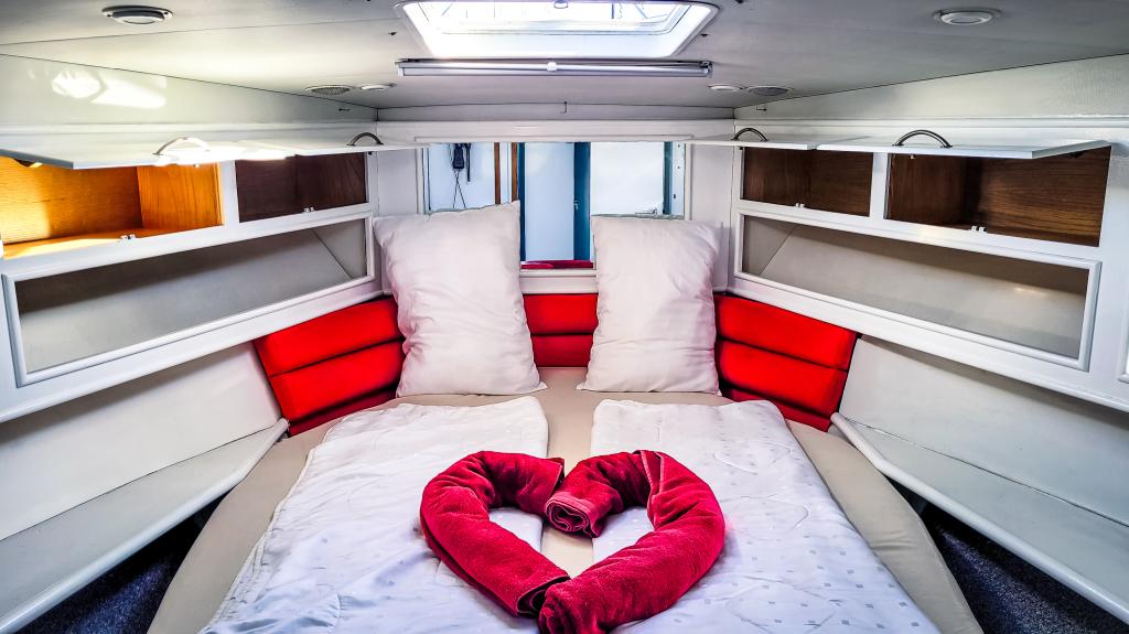 und hat genügend Stauraum für alle funktionalen Begebenheiten auf einem Schiff. Im Heck an der