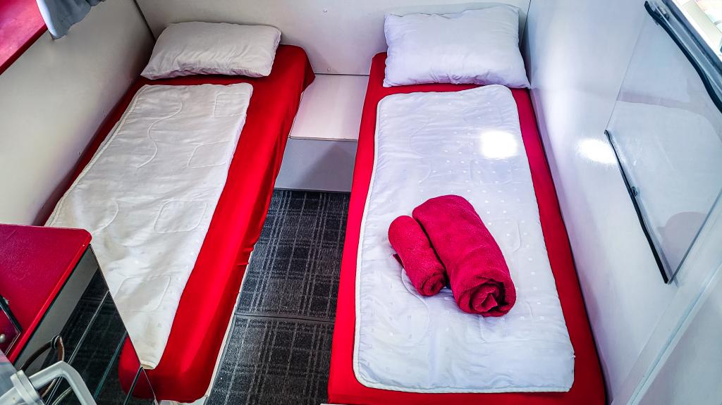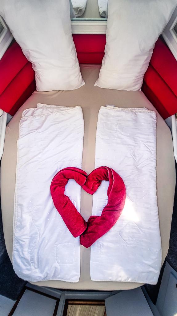verzaubert mit einer eleganten Ausstattung. Das sind zwei Kabinen (Doppel und Einzelbetten) mit