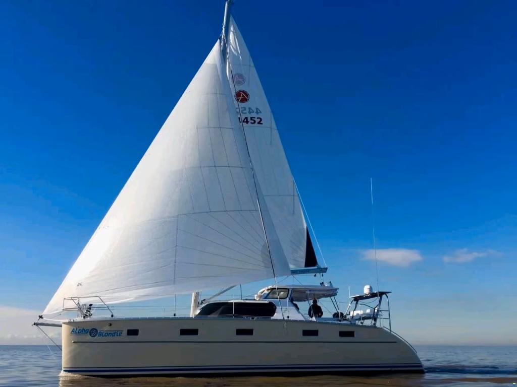 Die Alpha Blondie ist ein wunderschön gepflegter Antares-Segelkatamaran, der sich derzeit